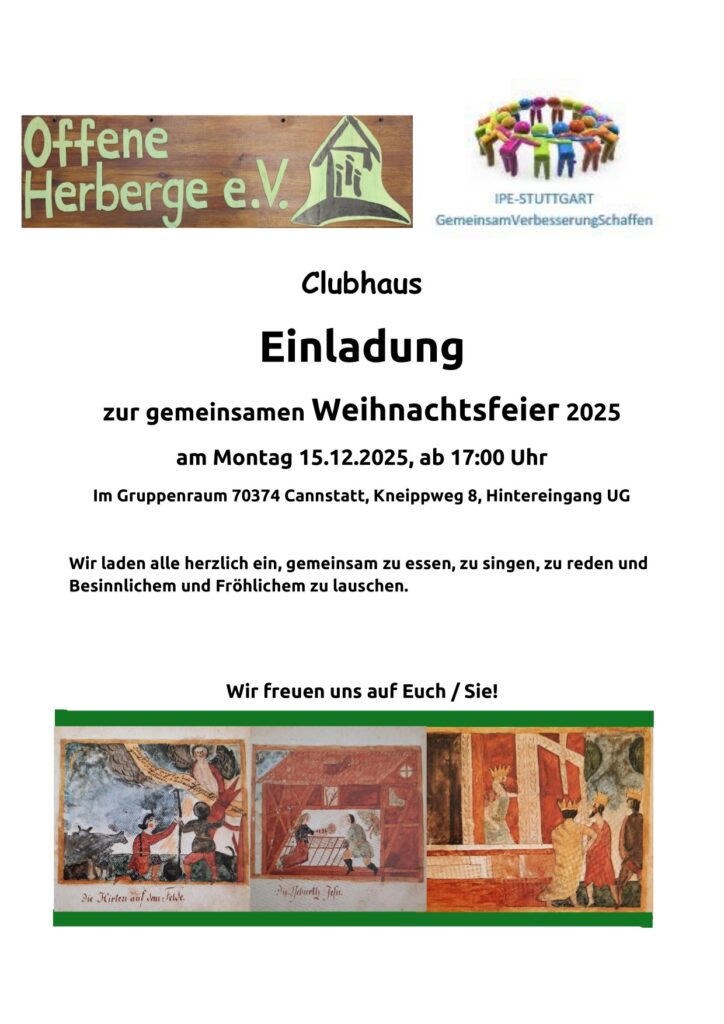 | 15.12.25 Montag | Weihnachtsfeier der Offenen Herberge |
